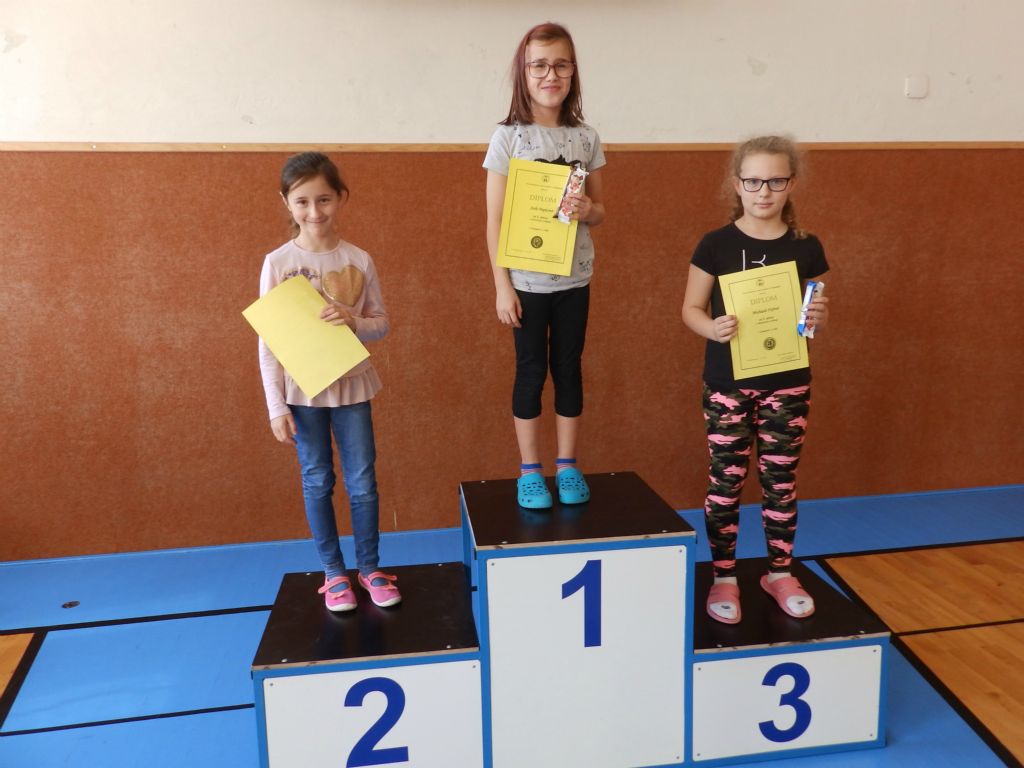 Ve středu 12. 4. 2019 proběhlo jarní kolo atletických závodů žáků 1. stupně. Ačkoliv nám počasí moc nepřálo, naši nejmladší sportovci překvapili svými výkony. Žáci závodili tradičně ve třech disciplínách, v běhu na 50m, hodu raketkou a skoku dalekém (1. a 2. třídy ve skoku z místa).