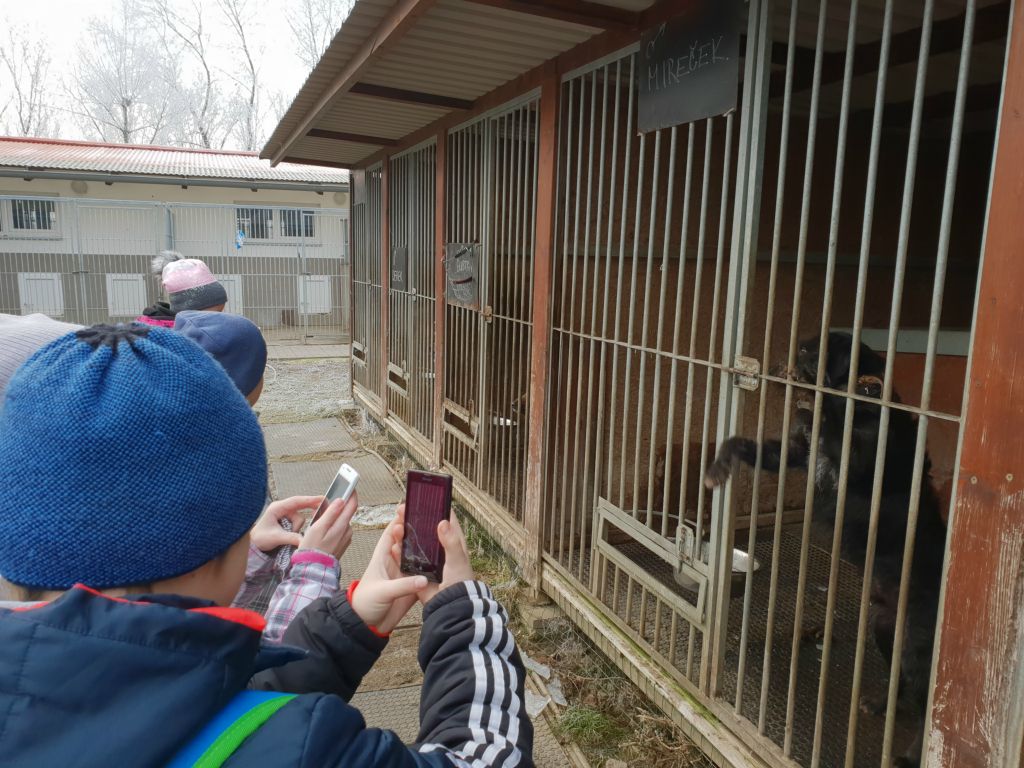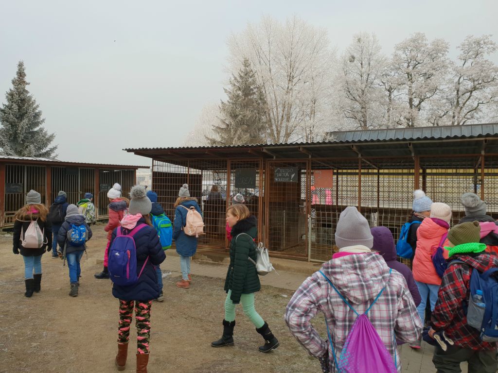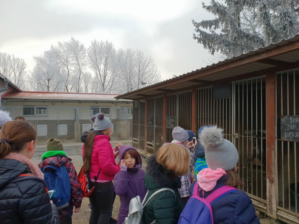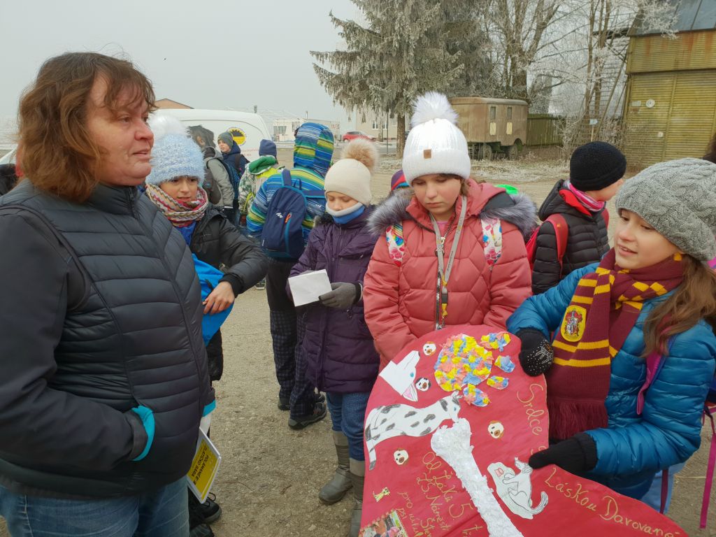 Děti je i přes mrazivé počasí přijely navštívit. Přivezly jim pamlsky, které samy ve škole pekly a další potřebné věci. Hlavním účelem bylo také poděkovat zaměstnancům útulku za jejich obětavou práci, povzbudit je a popřát, ať se jim i pejskům v novém roce moc daří.