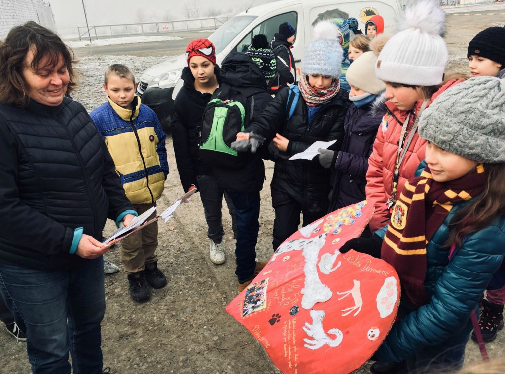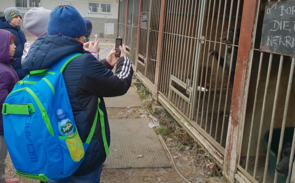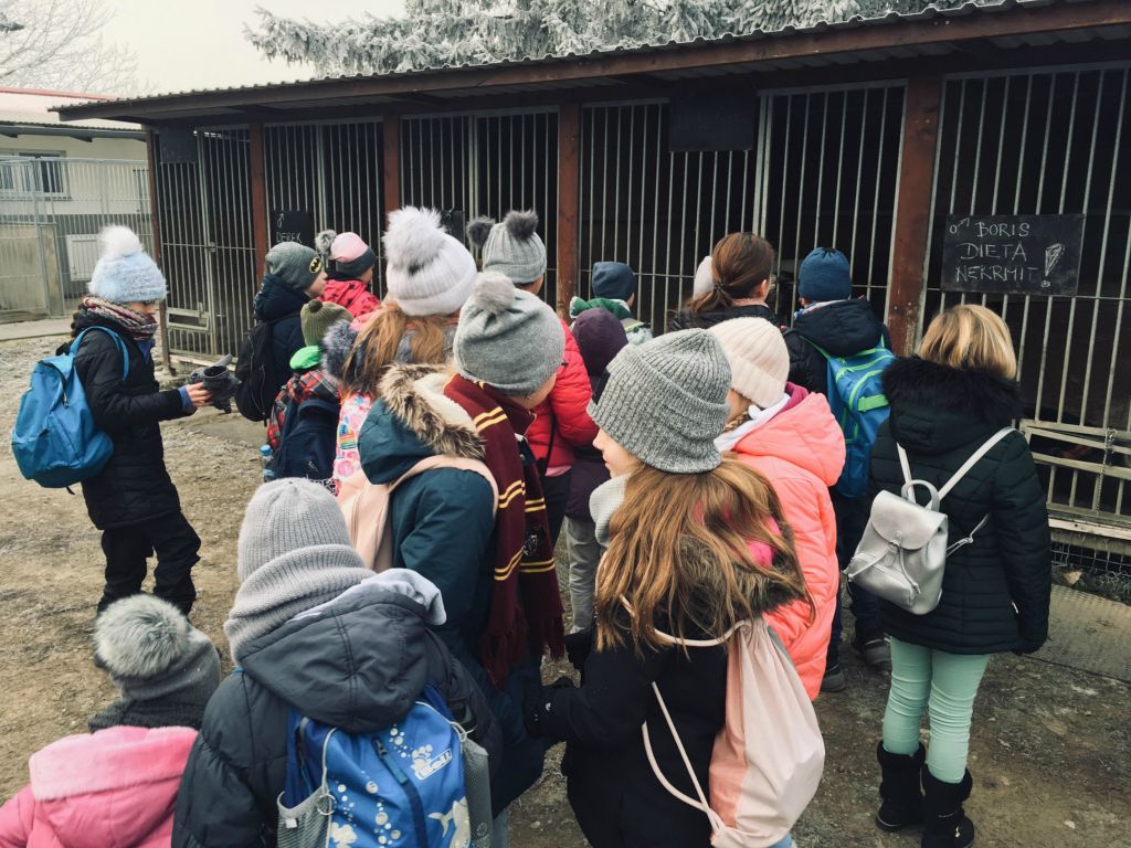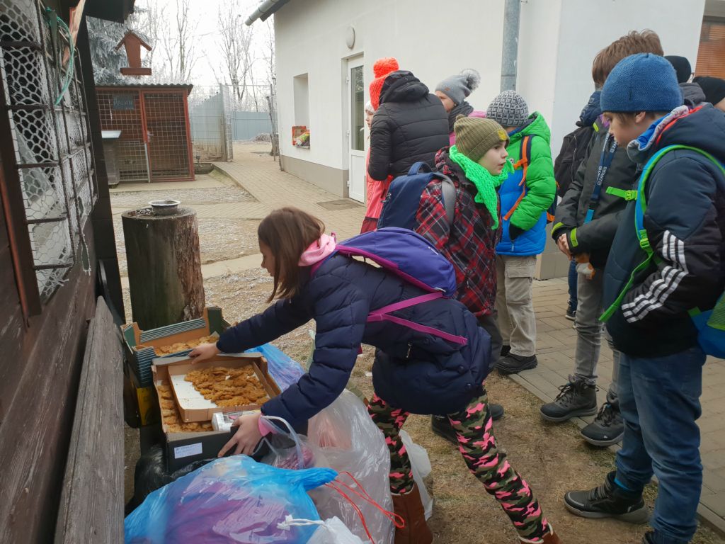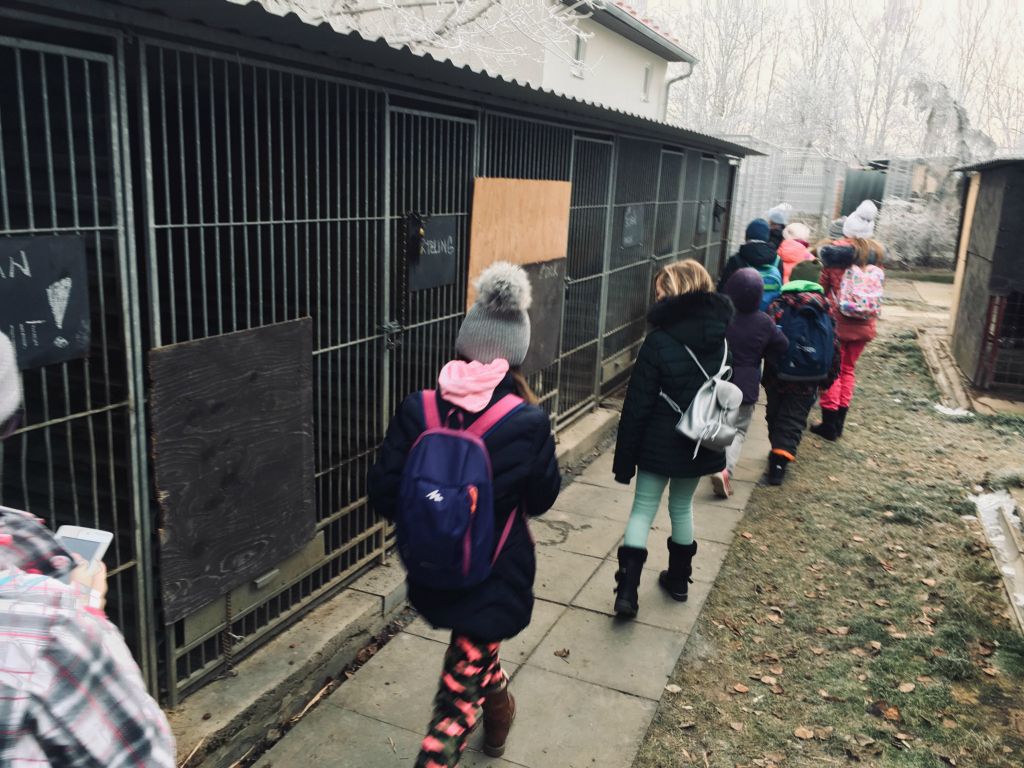 Děti je i přes mrazivé počasí přijely navštívit. Přivezly jim pamlsky, které samy ve škole pekly a další potřebné věci. Hlavním účelem bylo také poděkovat zaměstnancům útulku za jejich obětavou práci, povzbudit je a popřát, ať se jim i pejskům v novém roce moc daří.