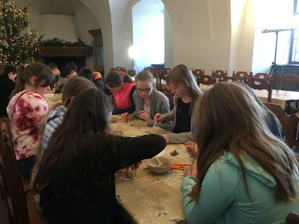 Minulý týden žáci 6. ročníku navštívili vánočně vyzdobený šternberský hrad. Prohlídka byla moc pěkná, zaměřená na období adventu, vánočních zvyků a tradic. Vánoční atmosféru skvěle dokreslila tvorba voňavé gelové svíčky, kterou si žáci pod vedením Mgr. Jana Gottwalda vlastnoručně vyrobili.