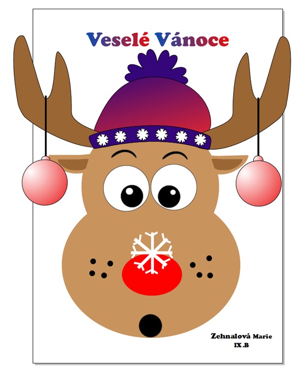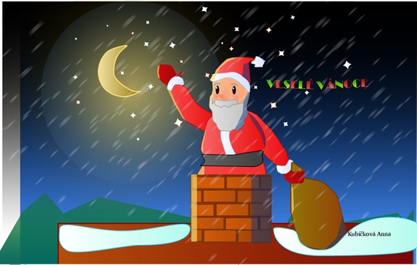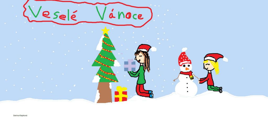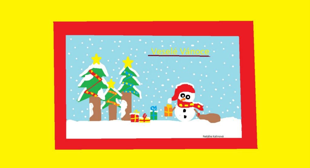 Z mnoha pěkných prací jsme po dlouhém hodnocení vybrali ty, které byly zajímavé a zároveň kvalitně provedené. 4. – 5. ročník obrázky vytvořil v Malování, 6. – 7. ročník ve Wordu, 8. – 9. ročník v Zoner Calistu. Vytištěné vánoční obrázky jsou vystaveny na nástěnce před učebnou informatiky.