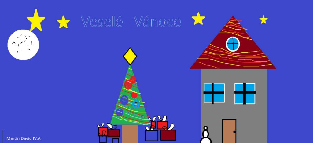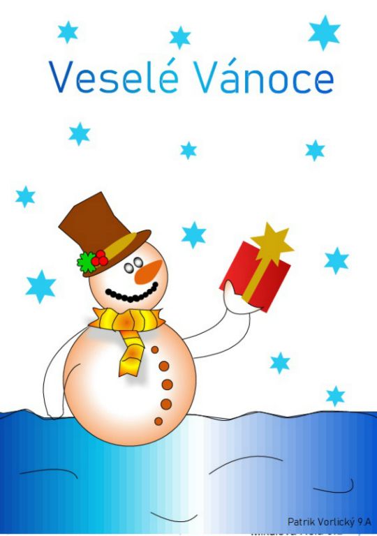 Z mnoha pěkných prací jsme po dlouhém hodnocení vybrali ty, které byly zajímavé a zároveň kvalitně provedené. 4. – 5. ročník obrázky vytvořil v Malování, 6. – 7. ročník ve Wordu, 8. – 9. ročník v Zoner Calistu. Vytištěné vánoční obrázky jsou vystaveny na nástěnce před učebnou informatiky.