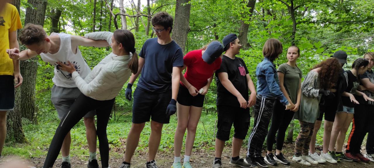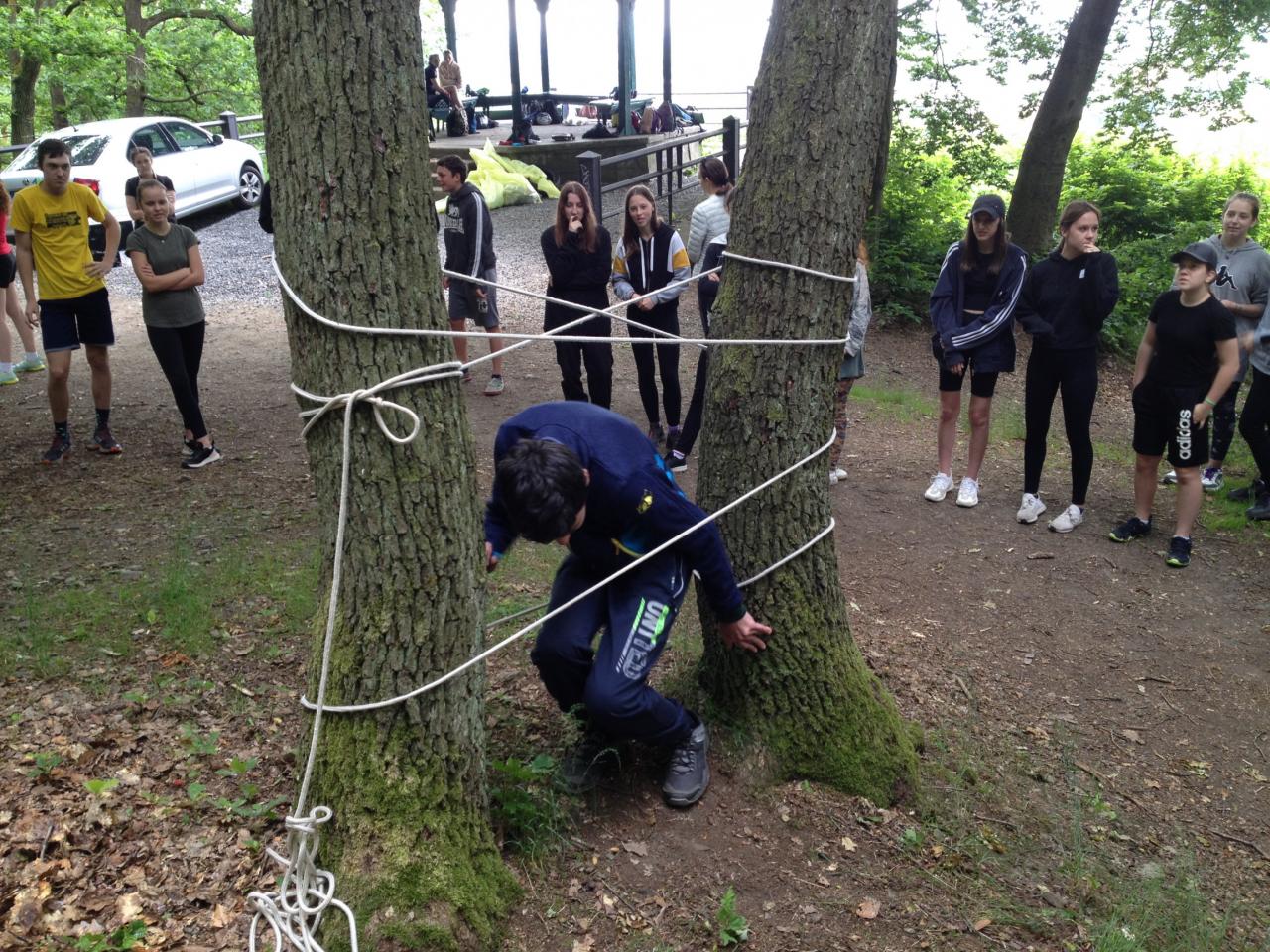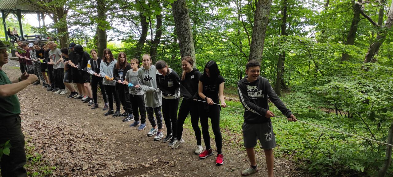 Po devadesátiminutové sběratelské procházce byla přichystaná zábava. Musíme říct, že u poznávání stop zvířat se pár z nás muselo zastydět, nicméně naše poetické a tělesné schopnosti sklidily úspěch. Obdivováni jsme byli hlavně tehdy, když jsme při přetahovací soutěži roztrhli lano a rozletěli se do všech světových stran.