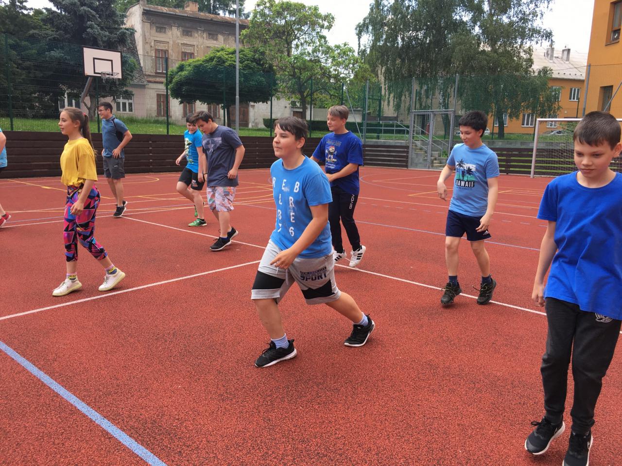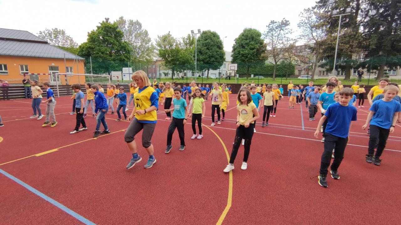 Počínaje dubnem se začaly otřásat stěny našich obydlí, když jsme distančně trénovali choreografii. V průběhu května a června jsme, jak se říká „sladili krok“, a secvičili tanec napříč celou školou od prvňáčků po dospěláky. V hodinách tělocviku, o volných hodinách a přestávkách se ze školního hřiště linuly noty, které poletovaly otevřenými okny tříd a způsobovaly masové klepání nohou, pohupování v bocích a úsměvy pod rouškami.