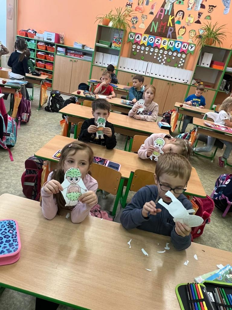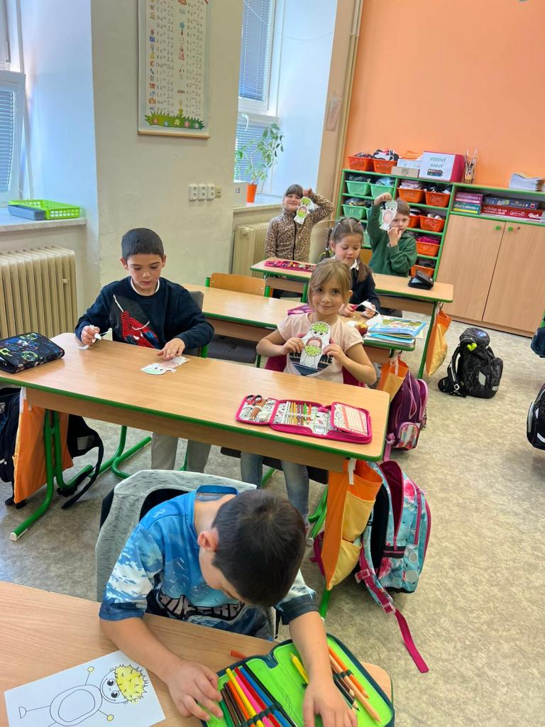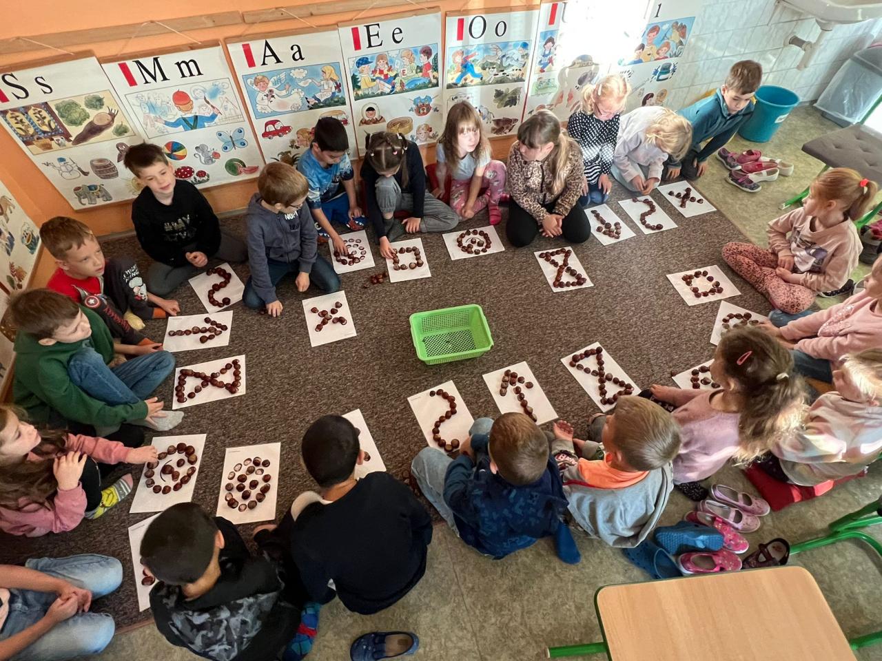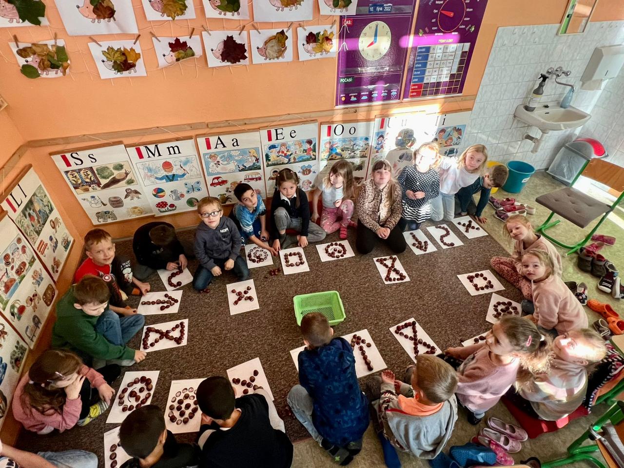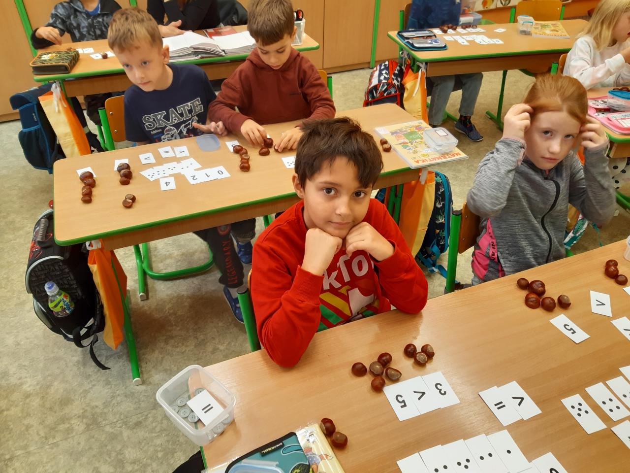 Žáčci z 1. B si minulý týden užili vyučování s kaštánky, které si nasbírali v parku.