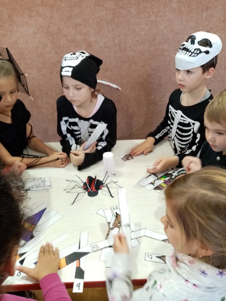 Prvňáčci se převlékli do strašidelných kostýmů a pro mladší kamarády si přichystali zábavné soutěžní dopoledne. Budoucí školáci mohli soutěžit v těchto disciplínách: strašidelné počítání, Halloweenské piškvorky, čarodějnické puzzle, hod na ježibabin domeček, atd.