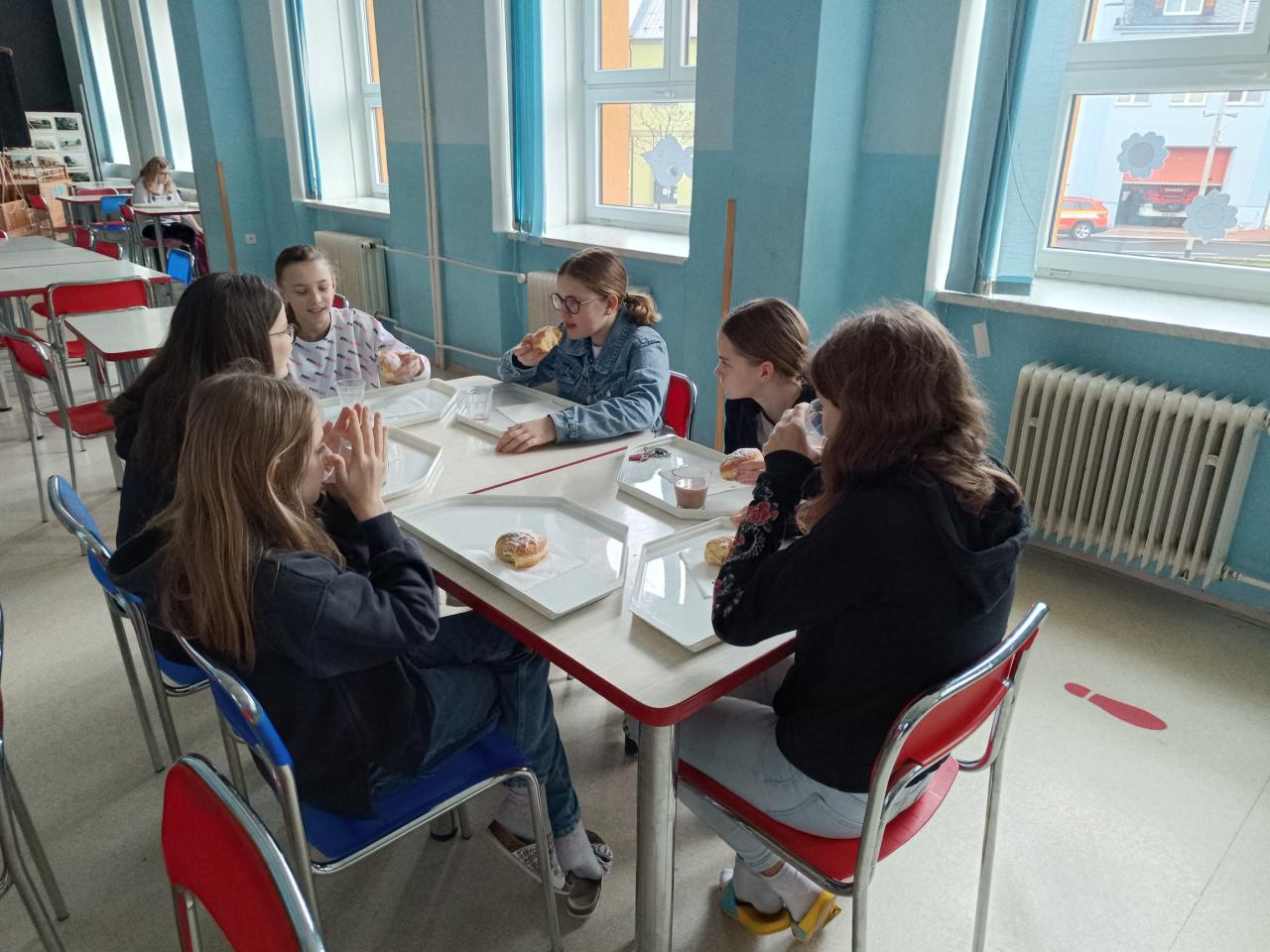 Je po sedmé hodině ranní a v naší školní jídelně je nezvykle rušno. Děti přichází, sedají na svá oblíbená místa ke svým kamarádům a vychutnávají si dobrou snídani. Máš hotový úkol do matematiky? Dáš mi ho opsat? Jejda, dnes píšeme diktát na vyjmenovaná slova? A co zase to zkoušení ze zeměpisu, nechá se někdo? Viděla jsi, co měla včera na sobě? Mňam, ten jogurt je výborný. Takové úryvky rozhovorů lze zaslechnout od stolů a nám kantorům je u toho příjemně, vidíme partu kamarádů, kteří spolu v poklidu snídají a prohlubují svá přátelství. A o to jde, to je cílem tohoto snídaňového klubu, do kterého se děti naší školy mohly od druhého pololetí přihlásit.