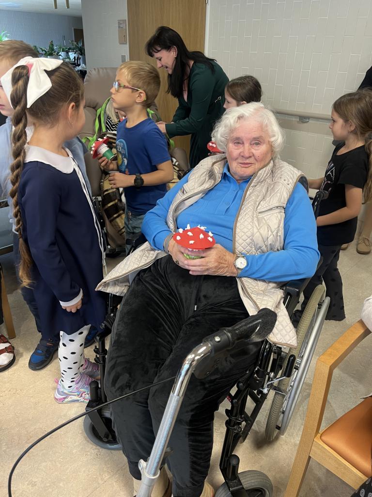 1. říjen je Mezinárodní den seniorů, ale i Mezinárodní den hudby. A když se tyto dva svátky propojí, vznikne milá návštěva dětí v domově seniorů. Žáci II. A a II. B zavítali ve středu za seniory do domova na Obloukové ulici, aby jim zpříjemnili dopoledne. V přátelské atmosféře, která velmi rychle zahnala všechen stud, děti zazpívaly písničku, zatancovaly mazurku a na závěr všem klientům rozdaly krásné muchomůrky, které si pro ně s pečlivostí a s radostí připravily ve škole. Dětem i dospělým vykouzlilo toto první příjemné setkání úsměv na rtech a už se těší na další návštěvu.