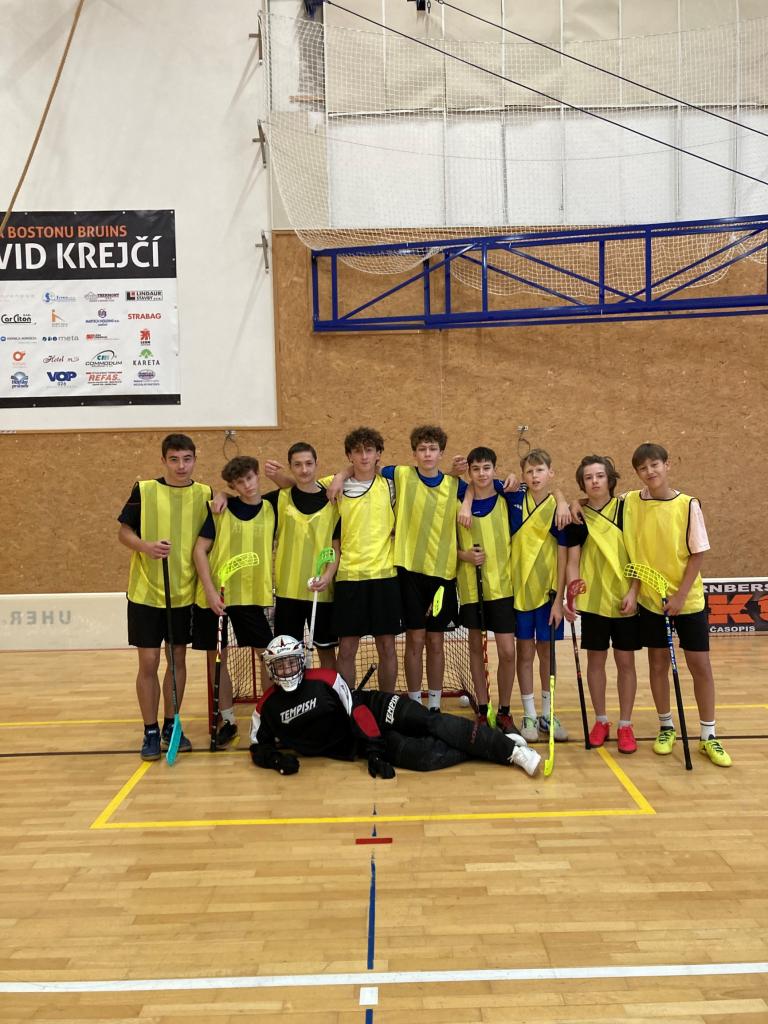 O týden později naši mladší hráči soutěžili proti Gymnáziu Šternberk, Uničovu a Medlovu. I díky vynikajícím zákrokům brankáře si vybojovali 3. místo, a to i přes silnou konkurenci.