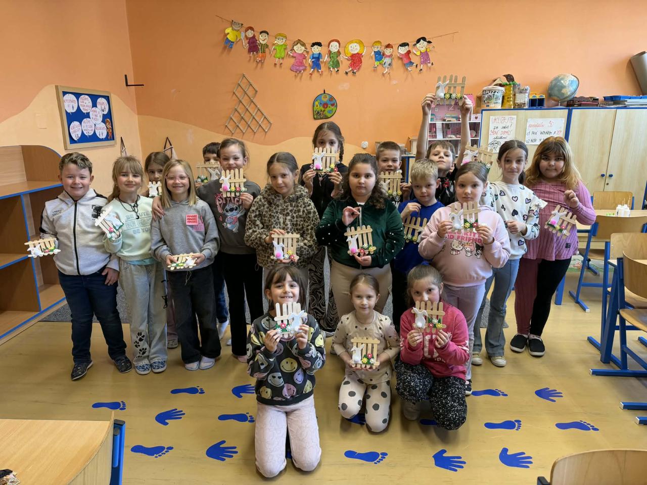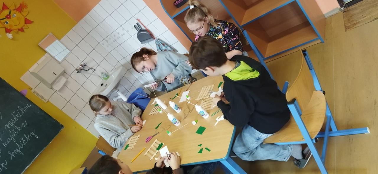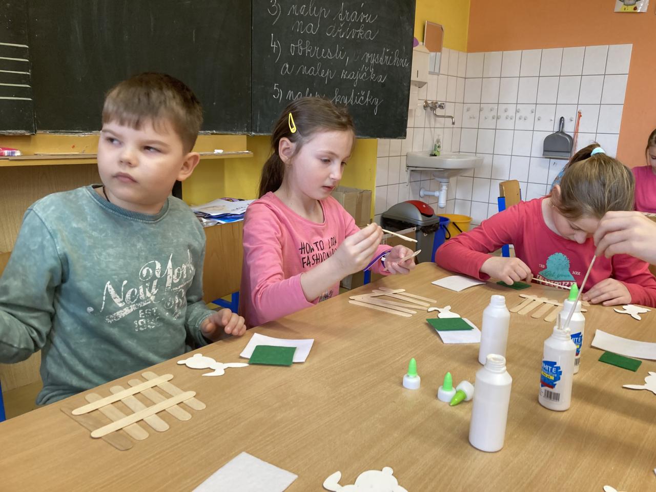 V březnu proběhla velikonoční dílnička, při které si děti vyzkoušely tvoření z různých materiálů. Z dřívek a filcu vyráběly velikonoční dekoraci.