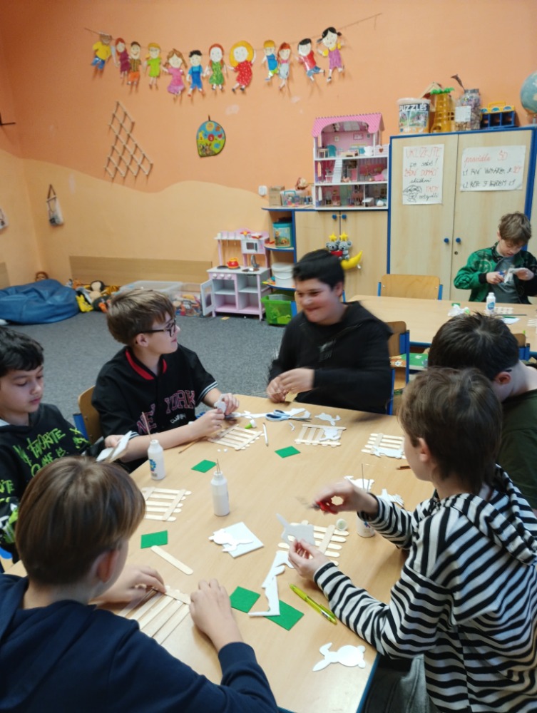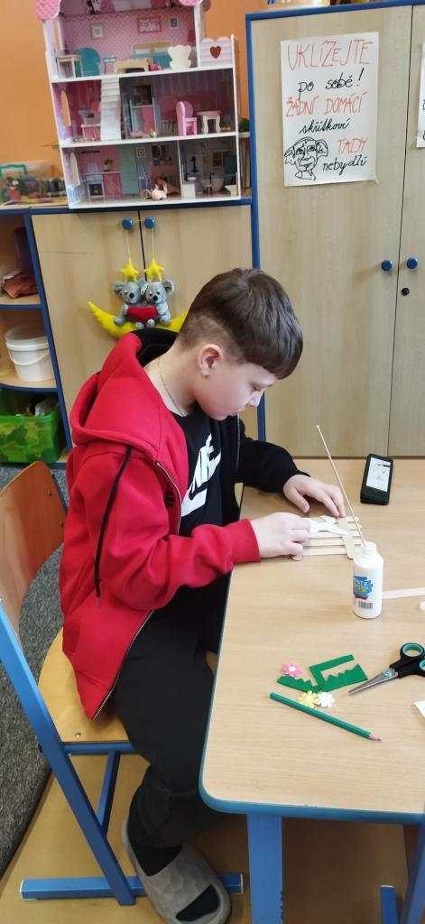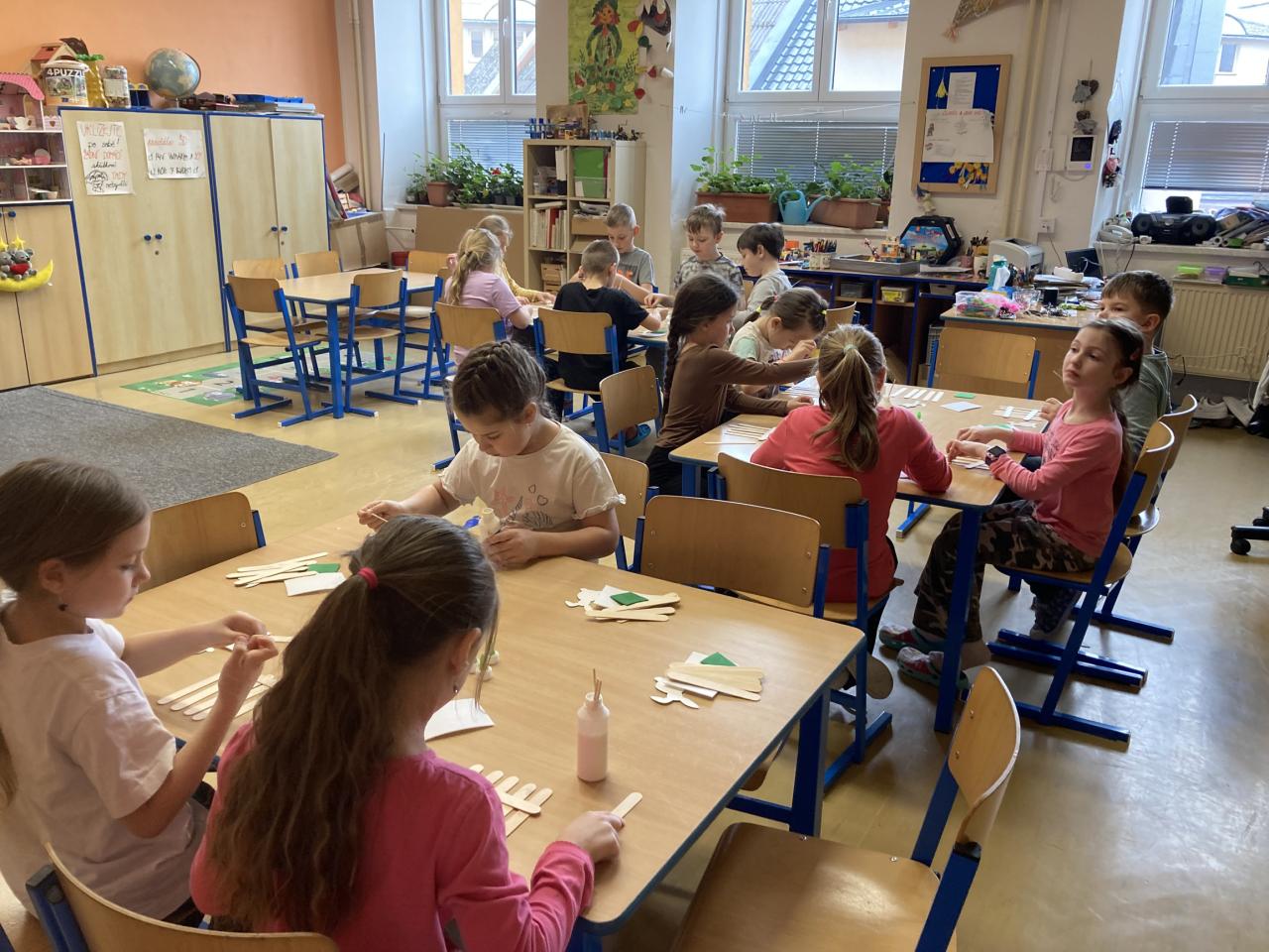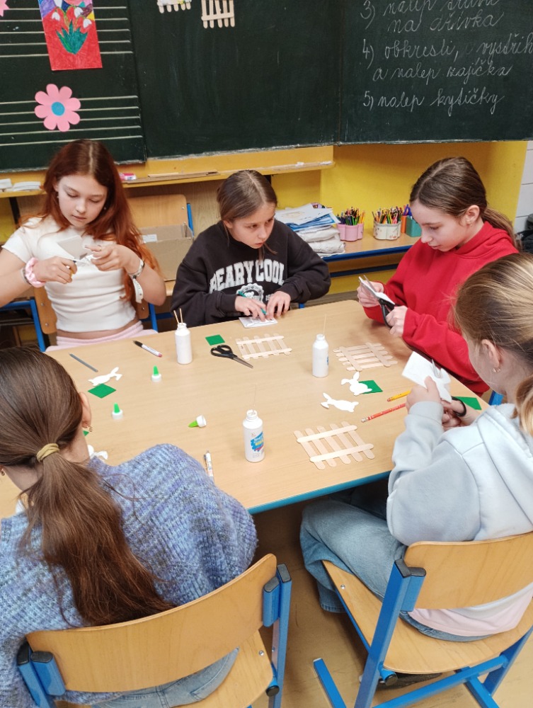 V březnu proběhla velikonoční dílnička, při které si děti vyzkoušely tvoření z různých materiálů. Z dřívek a filcu vyráběly velikonoční dekoraci.