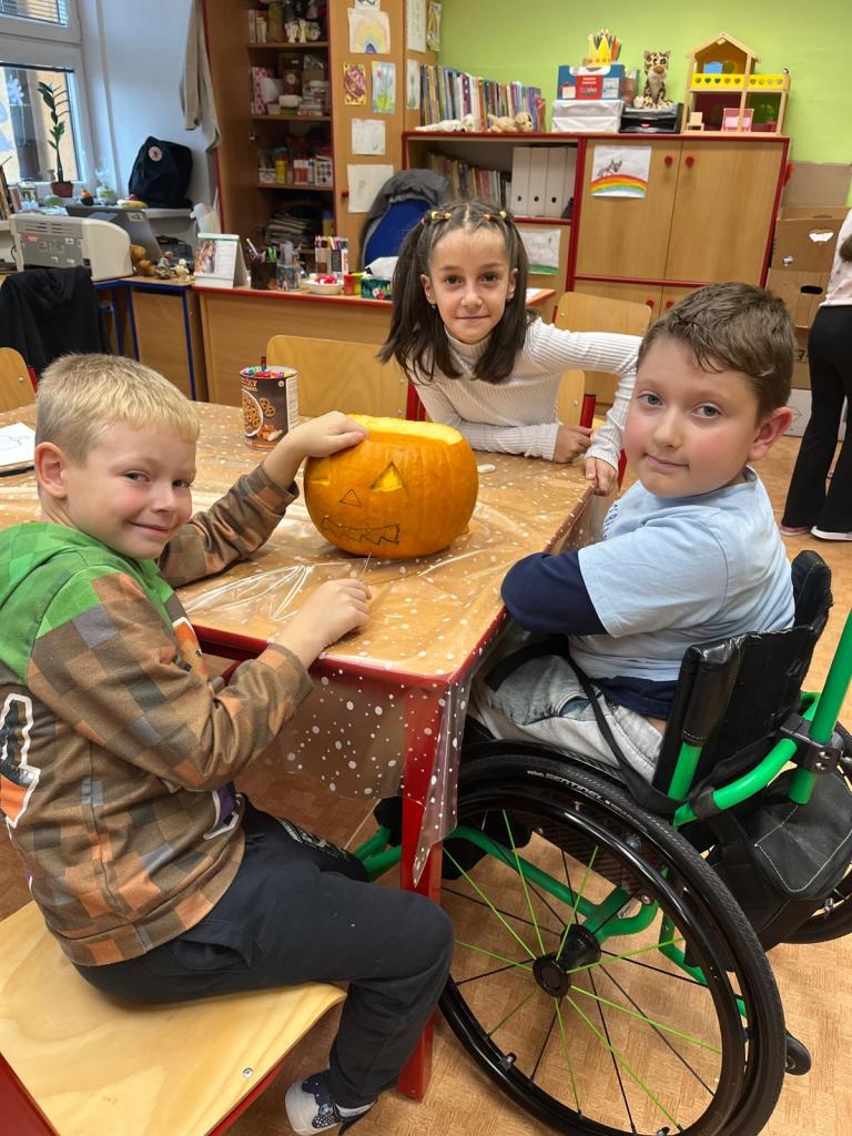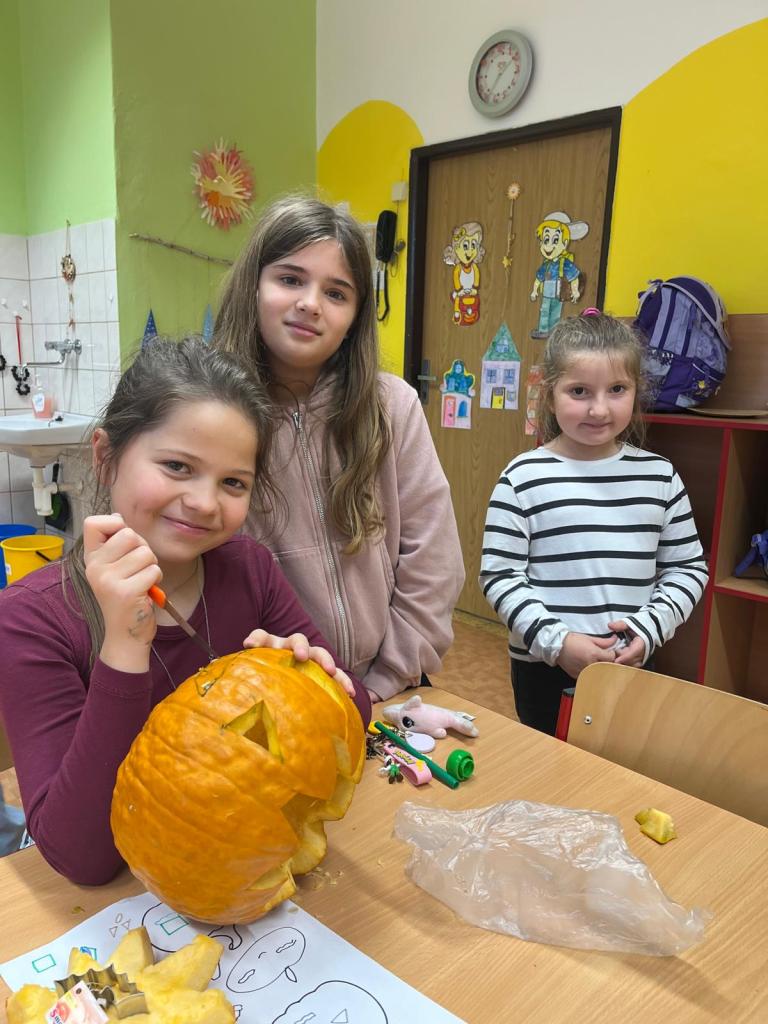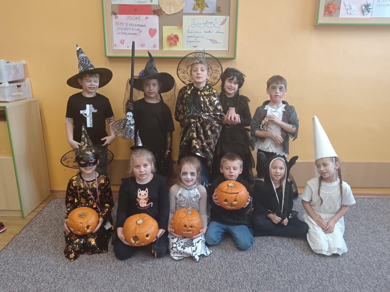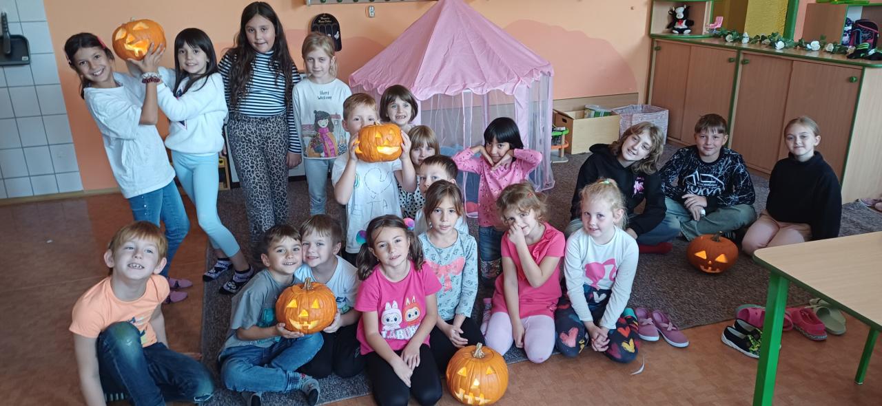 Poslední týden před prázdninami patřil Halloweenu! Děti si s nadšením vydlabaly a vyřezaly dýně, vyrobily strašidelné masky a proměnily školní chodby v říši malých příšerek. 🕸️👻