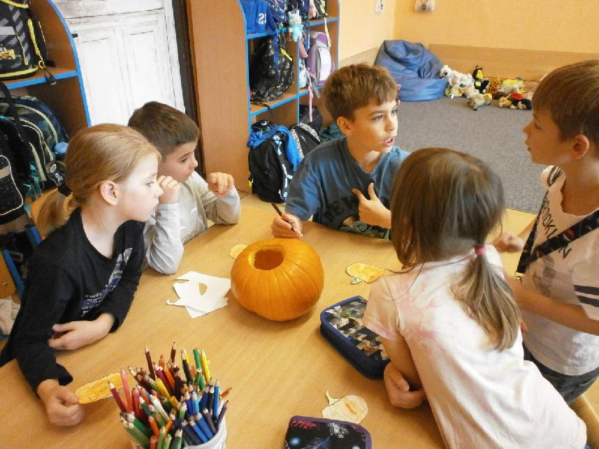 Poslední týden před prázdninami patřil Halloweenu! Děti si s nadšením vydlabaly a vyřezaly dýně, vyrobily strašidelné masky a proměnily školní chodby v říši malých příšerek. 🕸️👻