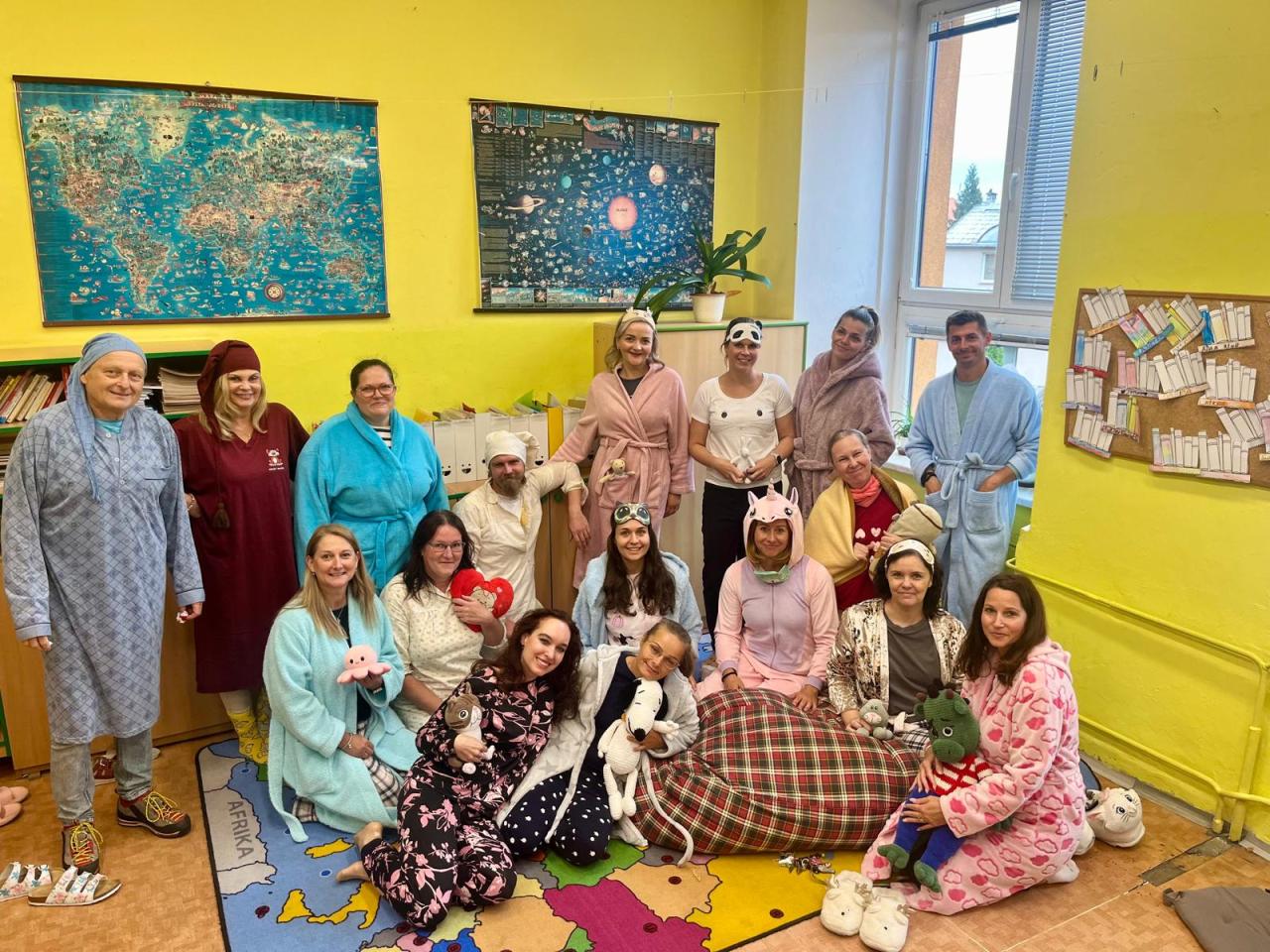 Žáci i učitelé přišli do škol v pestrých pyžamech, županech a roztomilých papučích.