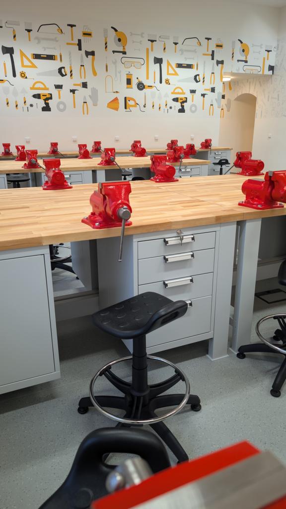 V rámci druhé fáze, která bude dokončena v průběhu nového roku, se dílny dovybaví novým nábytkem, nářadím a moderními pomůckami, včetně 3D tiskárny a skeneru. Naši žáci tak budou mít k dispozici tvůrčí prostředí pro rozvoj svých dovedností, které mohou využít v praktickém životě.