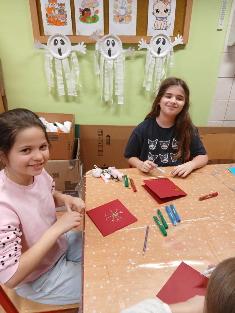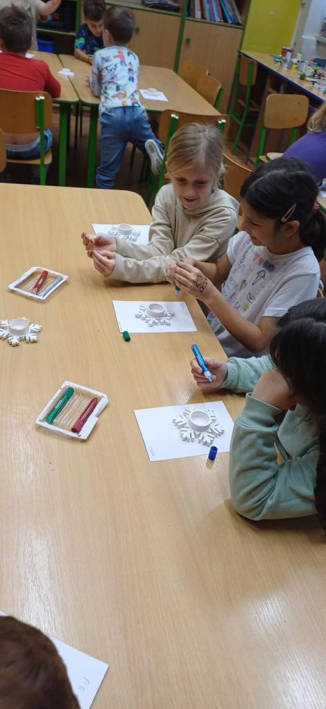 Pohodový, klidný adventní čas začal první vánoční dílničkou. Děti zdobily sádrové svícny, vyráběly krásná přáníčka, luštily kvízy a křížovky. Odpoledne se neslo v duchu vzájemné spolupráce a očekávání Vánoc. Těšíme se na další tvoření, které nás čeká v dalších týdnech.